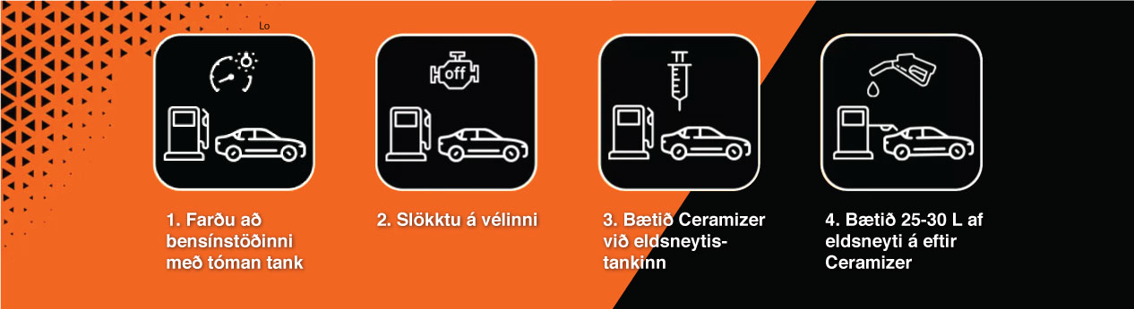 Ceramizer CP virkar þannig að eldsneytið í tankinum fær aukið orkugildi sem breytir eldsneytinu í hreinsi.